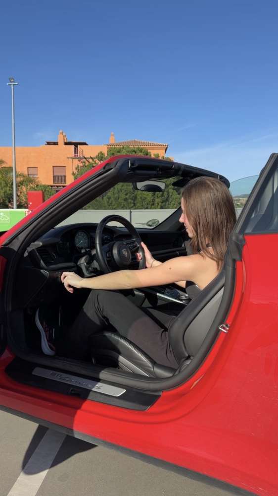 In the morning, my dad and I arrived bright and early and I introduced him to everyone. I was offered the chance to drive the Carrera S for a short clip, and how could I not accept?! Tilo and Jens (the main camera guys) guided me in what I had to do and filmed my every move. I drove the car a few times past the Villa and attempted to park it in the really narrow driveway, which wasn’t easy! Another scene that wasn't as simple as I would have liked was getting out of the car. The Carrera S had bucket seats which were quite low down and I’ll just say that it took a few tries to get a good shot of me getting out.