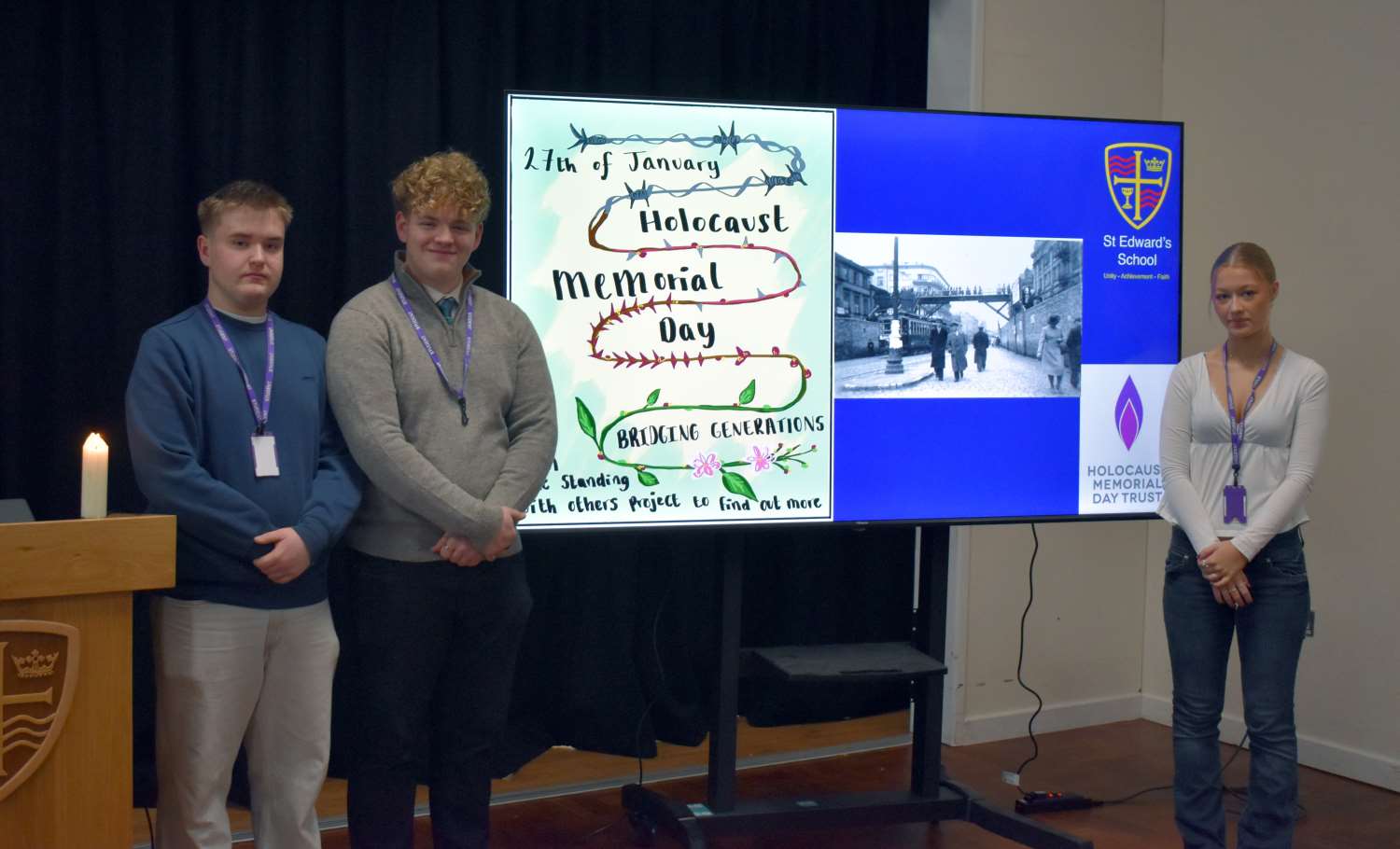 The theme of this year's Holocaust Memorial Day is Bridging Generations, and the Standing With Others pupils led the day's commemoration and candle-lighting, and will lead collective worship across the week. This theme invites reflection on how memory is passed on when living witnesses are no longer with us and the Standing With Others group are asking the student body to carry that memory forward with care, responsibility, and critical insight. Today they shared the story of Janusz Korczak and the Chlodna Bridge in the Warsaw ghetto (courtesy of the UCL Centre for Holocaust Education). The commemoration included a moving poem written by one of our international students, Dallas Brasil (slide 14). In addition to this, pupils have been commemorating Holocaust Memorial Day in the following ways: