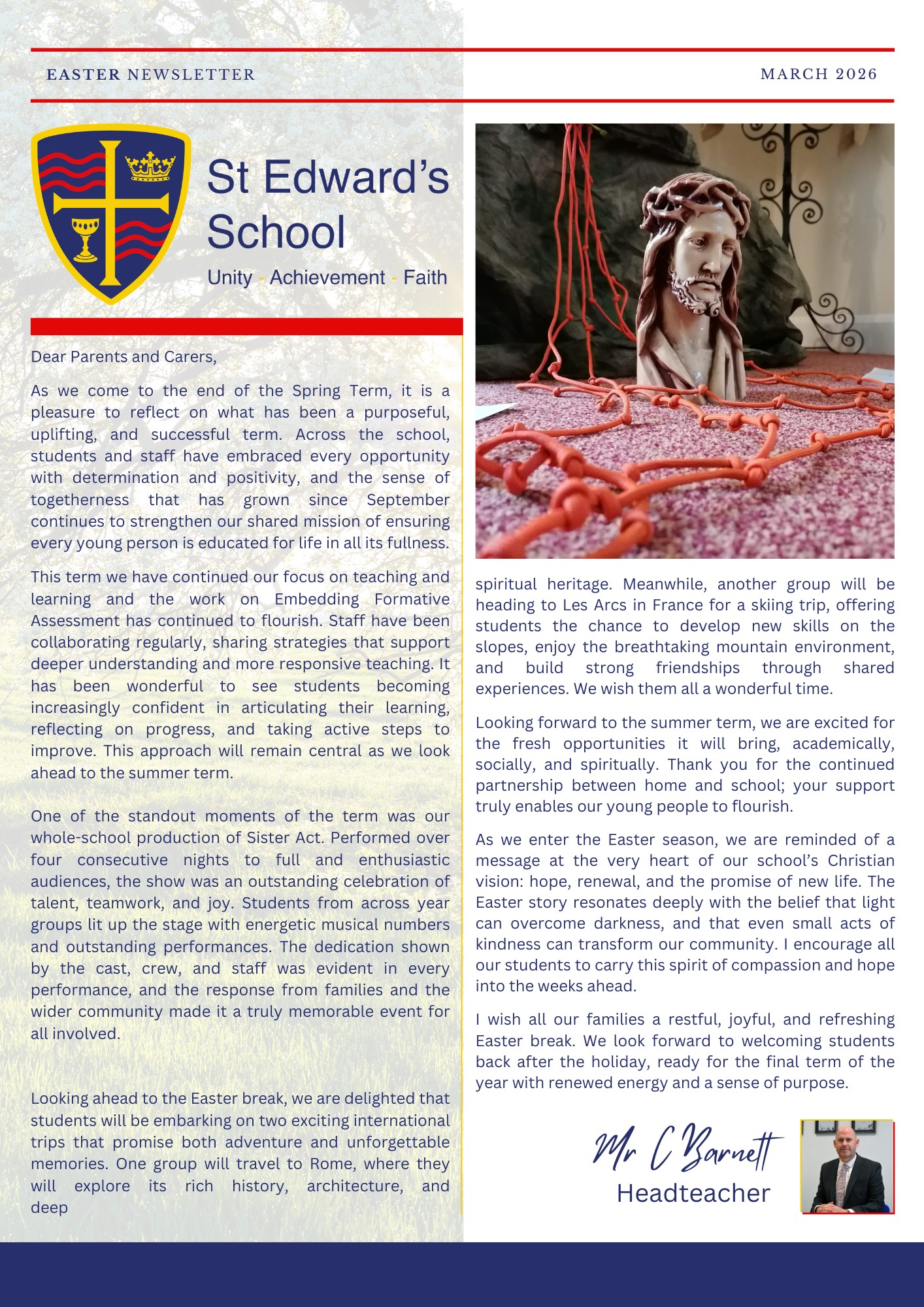 26 March 2026 St Edward’s Easter Newsletter 2026 Here’s the St Edward’s Easter Newsletter, outlining all of the exciting things we’ve learned and experienced this term. You can download your copy of the newsletter by clicking the Download button. Download News Sixth Form Share Tweet